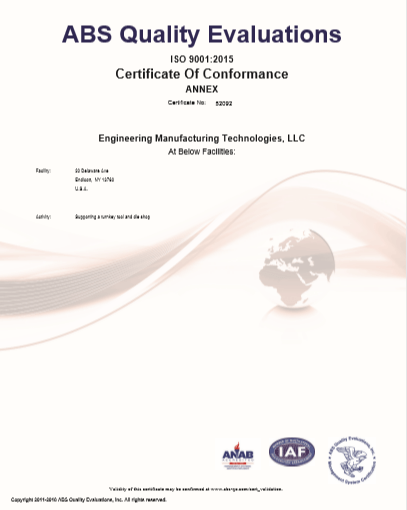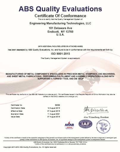 Engineering Manufacturing Technologies became ISO 9001-2015 Certified.